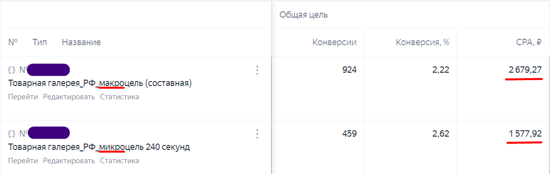 У клиента интернет-магазин отопительного оборудования. Рекламные кампании оптимизируются по макроцели. Дополнительно я настроил микроцель "активность 240 секунд", как для оптимизации стратегий, так и для отслеживания некоторой промежуточной микродинамики.