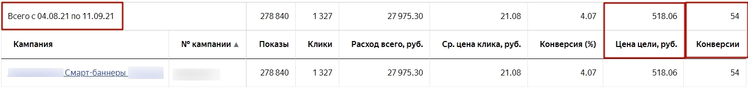 Прошло чуть больше 1 месяца, и теперь можно сравнить результаты работы 2х обычных поисковых и 1 РК со Смарт-баннерами.