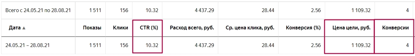 В итоге, я запустил РК на поиске в Яндекс.Директ, вот ее начальные результаты: