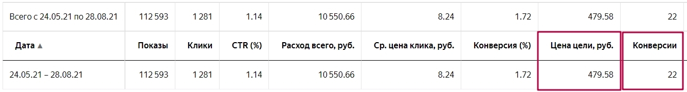 Вот результаты из РСЯ: