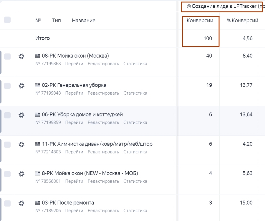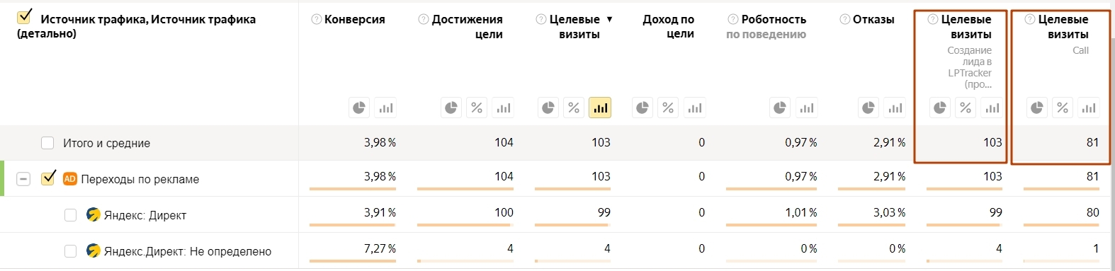 Далее, мы столкнулись с одной серьезной проблемой: клиент использовал crm - LPTracker, в котором постоянно слетал коллтрекинг. Из-за этого почти 50% заявок не попадала в Метрику, вот смотрите: